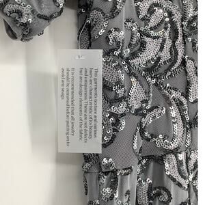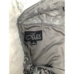 Alex Evenings Womens 10 Gray Sequin Embellished Maxi Dress Elbow Sleeve OS15-10