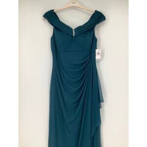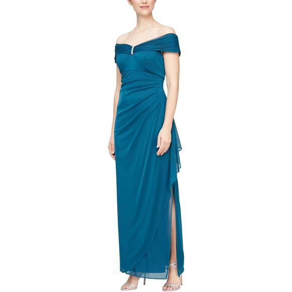 Alex Evenings Womens 10 Peacock Off The Shoulder Dress Embellished Ruched OS6-13