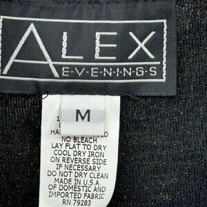 This Alex Evenings Women's 2 pc set features a floral jacket and tank top in medium size. The black and gold combo exudes elegance, while the nylon material ensures comfort. Perfect for any evening event.