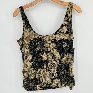 Alex Evenings Womens 2 pc Floral jacket Tank Top size Medium Black Gold sparkle