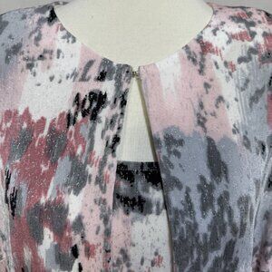 Alex Evenings Womens 2X 3X Cardigan Jacket & Tank Stretch Pink Gray Glitter