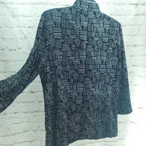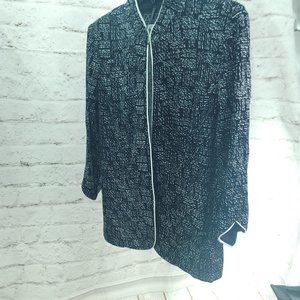 Alex Evenings Womens Black Abstract Long Sleeve Open Front Jacket Size Large