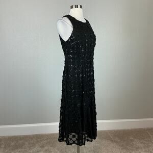 Alex Evenings Women's Cocktail Dress Size 8 Black Sequined Sleeveless Mid Sheath