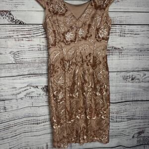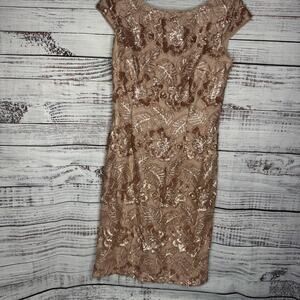 Alex Evenings Women’s Dress Size 8 Rose Gold Sequin Lace Sheath Cocktail Formal