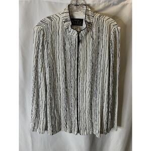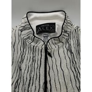 The Alex Evenings Women's Evening Blouse is a stunning jacket in size XL, featuring a sophisticated white color with black sparkle accents.