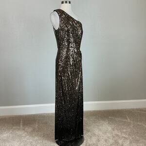 Alex Evenings Women's Formal Dress Size 18 Gold Sequined One Shoulder Long Gown