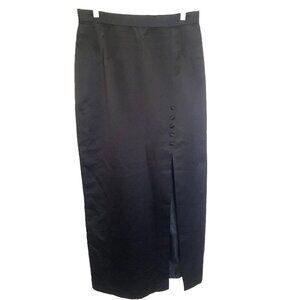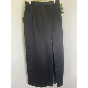 Alex Evenings Womens Long Straight Satin Skirt Black Dressy Button Slit Size 14