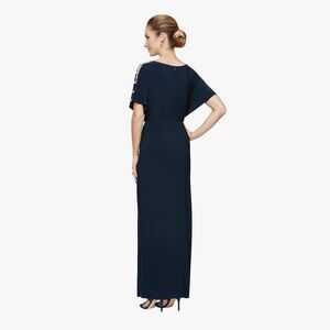 Alex Evenings Women's Long V-Neck Knot Front Wedding Guest