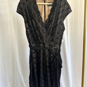 Alex Evenings Women's Plus 24W Black Lace Evening Dress with Sequins NWT