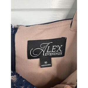Alex Evenings Womens Size 10 Navy Mermaid Gown Lace Off Shoulder Elegant