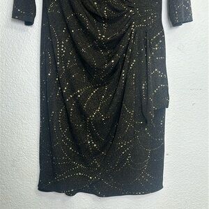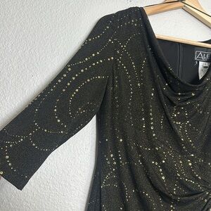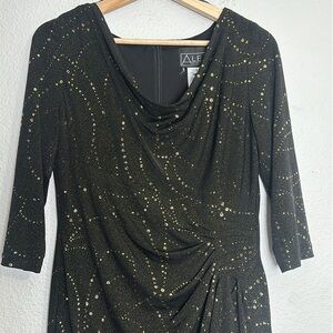 Alex Evenings Women’s Size 8 Black Gold 3/4 Sleeve Midi Knee Length Dress