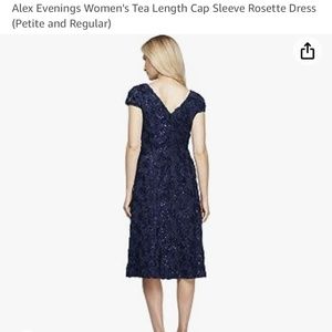 Alex Evenings Women's Tea Length Cap Sleeve Rosette Dress l