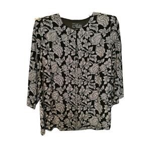 • This twinset features a 3/4 sleeve design and a scoop neck tank paired with a mandarin neck jacket.