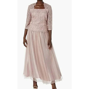 Alex Evenings Women's Two-Piece Dress with Blouse and Tulle Skirt, Antique Rose,