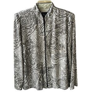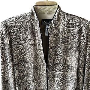 Alex Evenings Zip Down Paisley Stretchy Comfy Jacket Top. Metallic Glitter. SzL