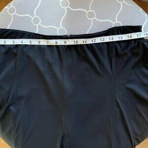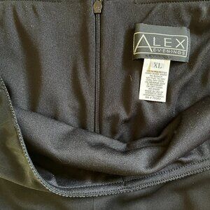Alex Evenings black skirt for evening wear. Hook and eye closure with zipper. Polyester soft black with sheer black top layer. 31 inches long. See photos for measurement. Hangs beautifully. Worn a few times and lived in back of closet for years. Perfect for holiday wear.