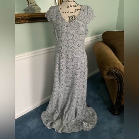 Alex Evenings lace and sequin jeweled petite evening gown.