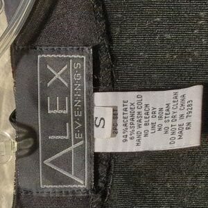 Alex Evenings top. Women's size S. Black top with red and white and a sparkling design. Gently used, excellent condition! Perfect for a special night out.
