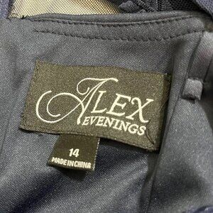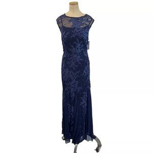Alex Evenings women's dress 14 navy blue soft lace long Maxi NWT