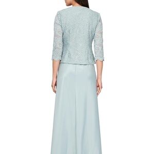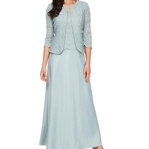 Turn heads with this stunning Alex Evenings two-piece dress in a rich, elegant blue. Worn only once and kept in original, unaltered condition, this set offers a flawless silhouette that enhances the natural shape of a woman’s body—creating a tall, graceful, and refined look.