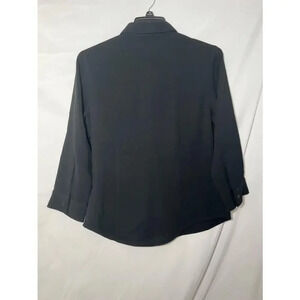 black blouse from Alex Garfield. It is made of a lightweight, wrinkle-resistant fabric and features a classic collar, button-up front, and long sleeves. Size 8. excellent used condition.