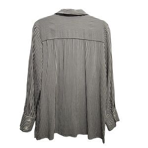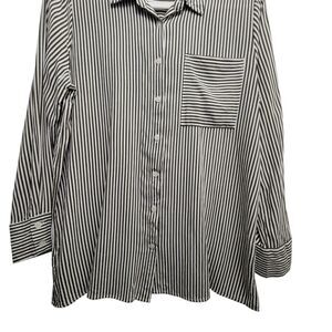 Alex & Jordan Green Striped Long-Sleeve Button-Up Blouse, Large. The top is in pre-owned condition.