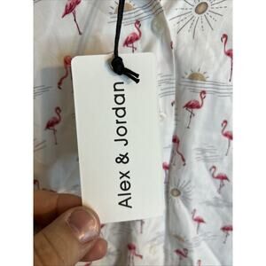 Alex & Jordan Womens Button Up Blouse Size XL Flamingo Sun Novelty Print Rayon