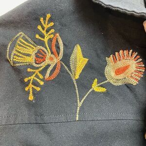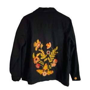 Alex Kim Fall Autumn Jacket Womens 1X Black Floral Embroidered Art to Wear Artsy