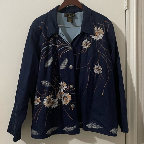 Alex Kim Navy Floral Embroidered Jacket Size 3X