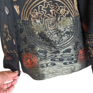 Alex Kim PM Black Embroidered Boho Button Jacket Art to Wear India Cotton Rayon