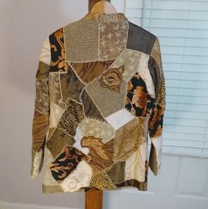 Alex Kim Patchwork Quilted Brown Gold Animal Print Floral Jacket Blazer Size S