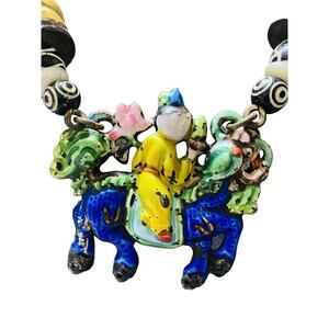 I was lucky to find this unique piece many years ago. Since I hadn’t heard of Alex and Lee , I contacted Lee through the website. He told me the necklace is wrapped horn with antique Asian beads and an ornament. They were jewelry designers to the Stars, including Salvador Dali.