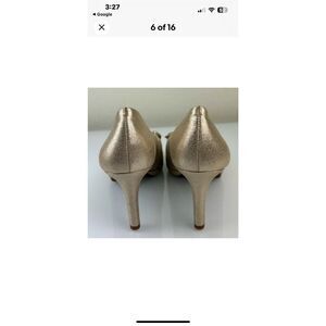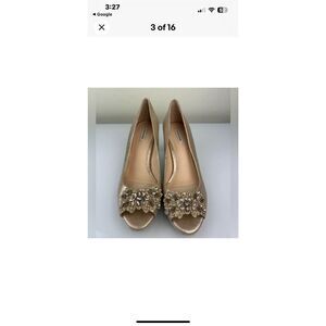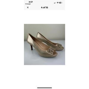 Alex Marie 9 Peep Toe Pump Heels Metallic Gold Rhinestone Accent Formal Bridal