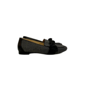 Bow, Flats, Gray, Black, professional, work shoes, comfort, slip on