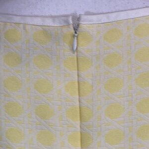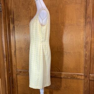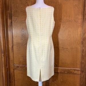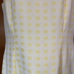 Beautiful yellow and white basket weave print shift dress. Hidden back zipper. White trim on neckline. Fully lined. Smoke free home.