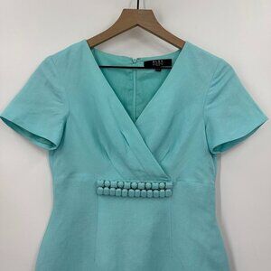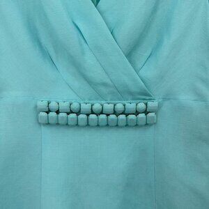 Alex Marie Beaded Patrice Dress Linen Blend Blue Petite Size 4P