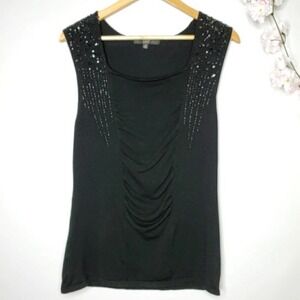 Features : woven, gathered center, beaded shoulders, sleeveless top