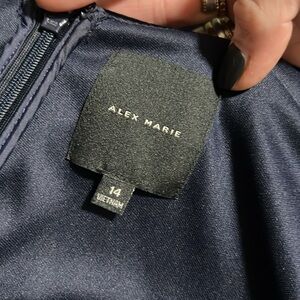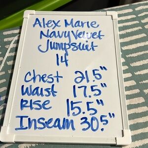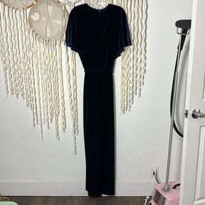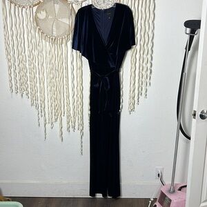 Alex Marie Beth Navy Velvet Jumpsuit Size 14 Faux Wrap Cap Sleeve