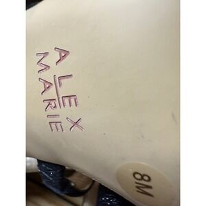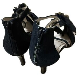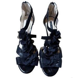 Make a statement in these elegant Alex Marie heels featuring black floral embellishments and a flattering strappy design. With a chic mid-height heel and back zip closure, these shoes blend comfort and style perfectly—ideal for weddings, cocktail events, or dressing up a classic look.