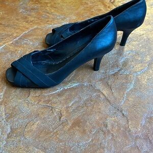Alex Marie Black Leather Minimalist Peep Toe Elegant Comfortable Heels Sz 8.5 M
