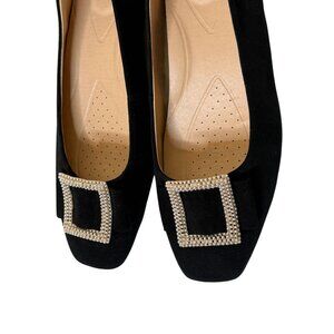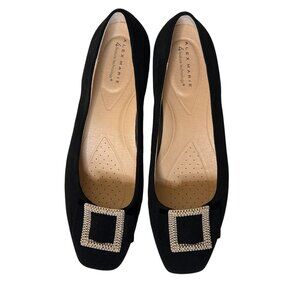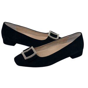 alex marie flats, rhinestone buckle shoes, black suede flats, wide width comfort, dressy flats, holiday shoes, office style, elegant footwear, classic black flats, soft girl aesthetic, old money style, timeless chic