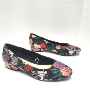 Experience the perfect blend of style and comfort with Alex Marie's Black and floral Flats. These slip-on shoes feature a classic silhouette with a flat sole, ideal for evening wear. Crafted with attention to detail, they offer a versatile look that complements any outfit.