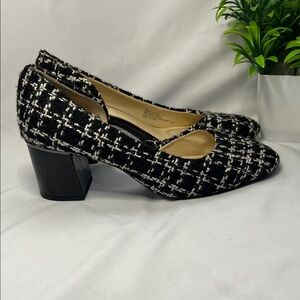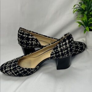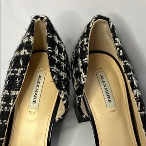 Elegant tweed heels by Alex Marie. Black and white design. Perfect for any occasion.used good condition
