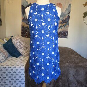 Alex Marie Blue Daisy Floral Lace Overlay Sheath Dress Women’s Size 2 Sleeveless