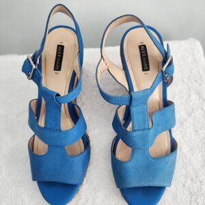 Alex Marie Blue Suede T-Strap High Wedge Fashion Espadrilles 8M