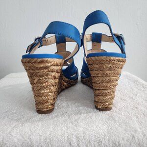 Beautiful Alex Marie Blue Suede High Wedge Fashion Espadrilles size 8M a most have for any occasion.