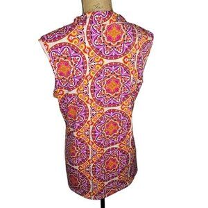 Alex Marie Bright Vibrant Pink Orange Medallion Boho Career Shell Tank Top