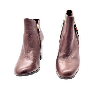 Alex Marie Brown Leather Ankle Boots 10 M 3 Inch Block Heels Zip Sides