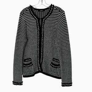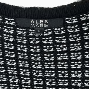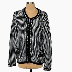 Alex Marie Cardigan Sweater Womans L Black White Faux Pearls Hook Front Elegant