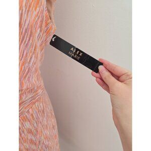 Alex Marie Carmen Orange Knit Ruched Cap Sleeves Sheath V-Neck Lined Dress 10 M